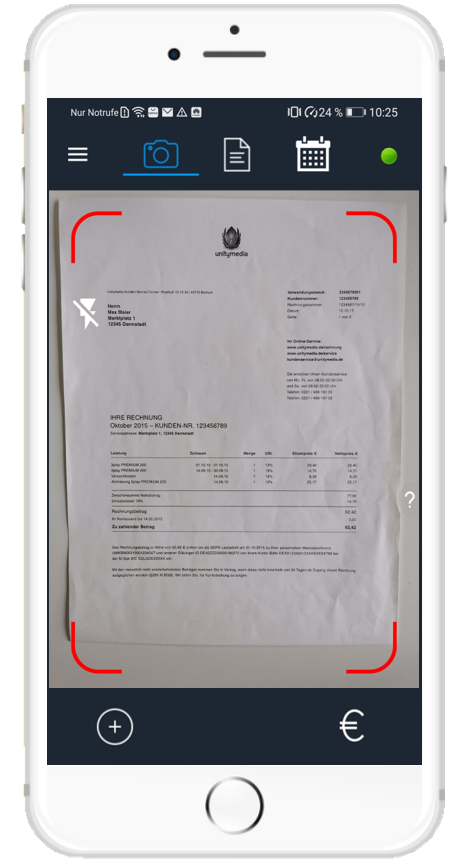 (2) Wenn du z.B. eine neue Rechnung in die App aufnimmst, lesen wir automatisch alle nötigen Informationen zur Überweisung (Empfänger, IBAN, Betrag u.s.w.)